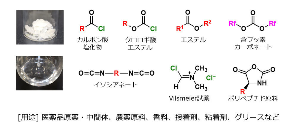 光オン・デマンド有機合成法による有用化学品(ホスゲン化生成物)の小規模多品種での化学品生産